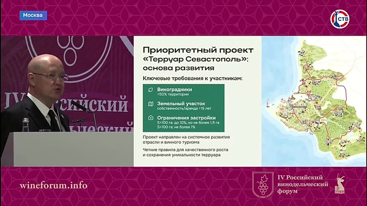 За последние 5 лет площади виноградников в Севастополе выросли более чем на 1100 гектаров. За это же время федеральная субсидия в винодельческую отрасль Севастополя составила 2,2 миллиарда рублей. Об этом рассказал Губернатор Михаил Развожаев на заседании IV Российского винодельческого форума, который проходит в Москве.