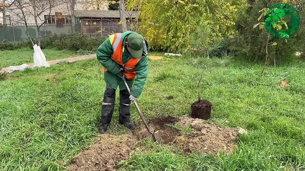 В Сквере 60-летия СССР специалисты успешно завершили высадку павловнии и сосен.