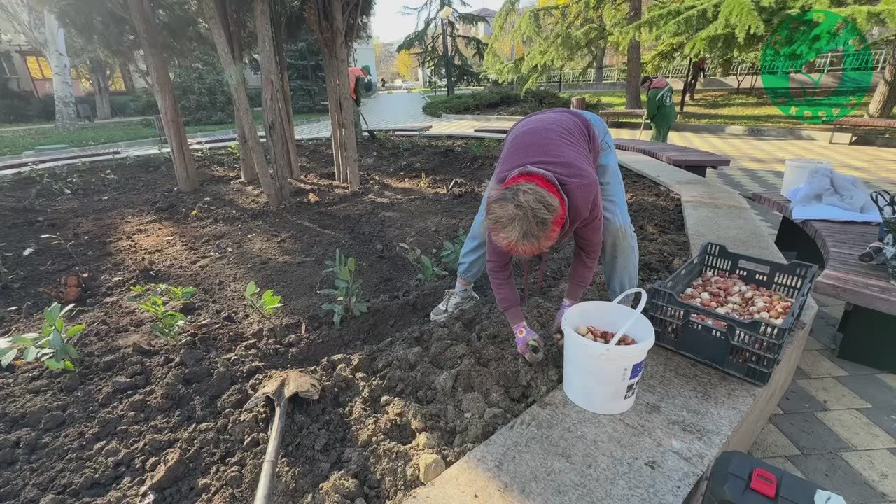 В сквере имени Горького в Балаклаве высадили лавровишню и тюльпаны