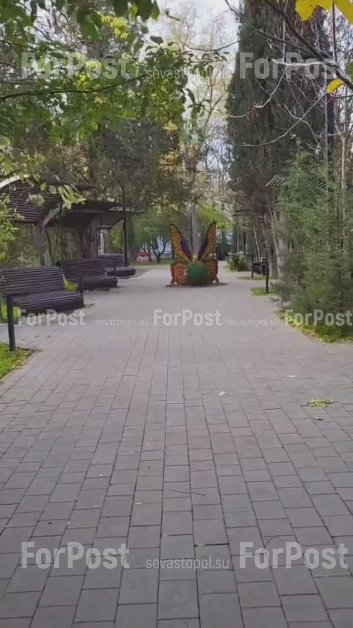 Вот так сейчас выглядит сквер на улице Яна Гамарника: бабочка прогрызла дырку в шаре, а розовые фламинго немного подустали.