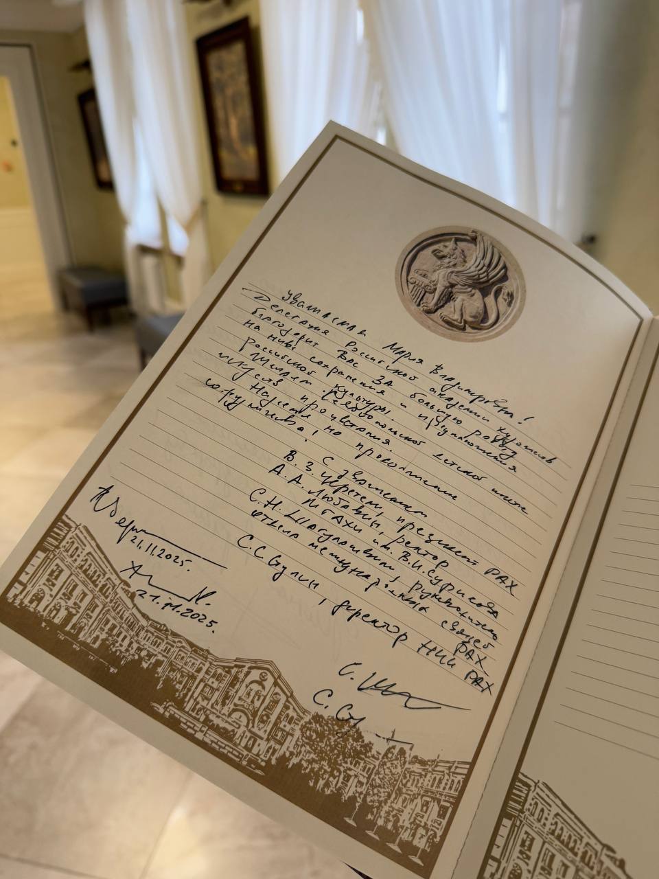 Каждый из участников делегации РАХ оставил памятную запись в книге почётных гостей. Визит стал важным шагом для укрепления сотрудничества между Российской академией художеств и Севастополем, а также открыл новые возможности для обмена опытом и совместных проектов в сфере детского художественного образования.