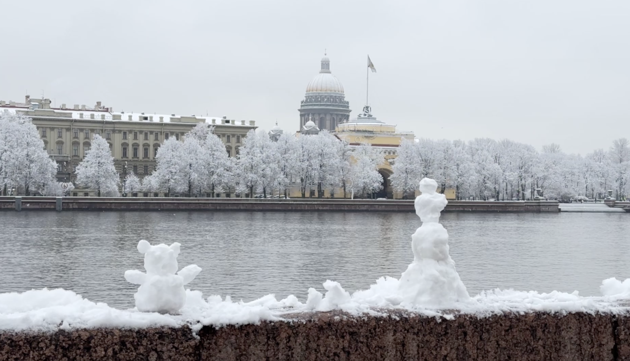Ноябрьский снегопад обрушился на Санкт-Петербург, превратив город в зимнюю сказку. Белым покрывалом укрылись крыши домов, памятники и скверы. Деревья, окутанные снегом, стали живописными арками. На набережной Невы появились снеговики. Их весёлые фигуры – герои фотографий петербуржцев.