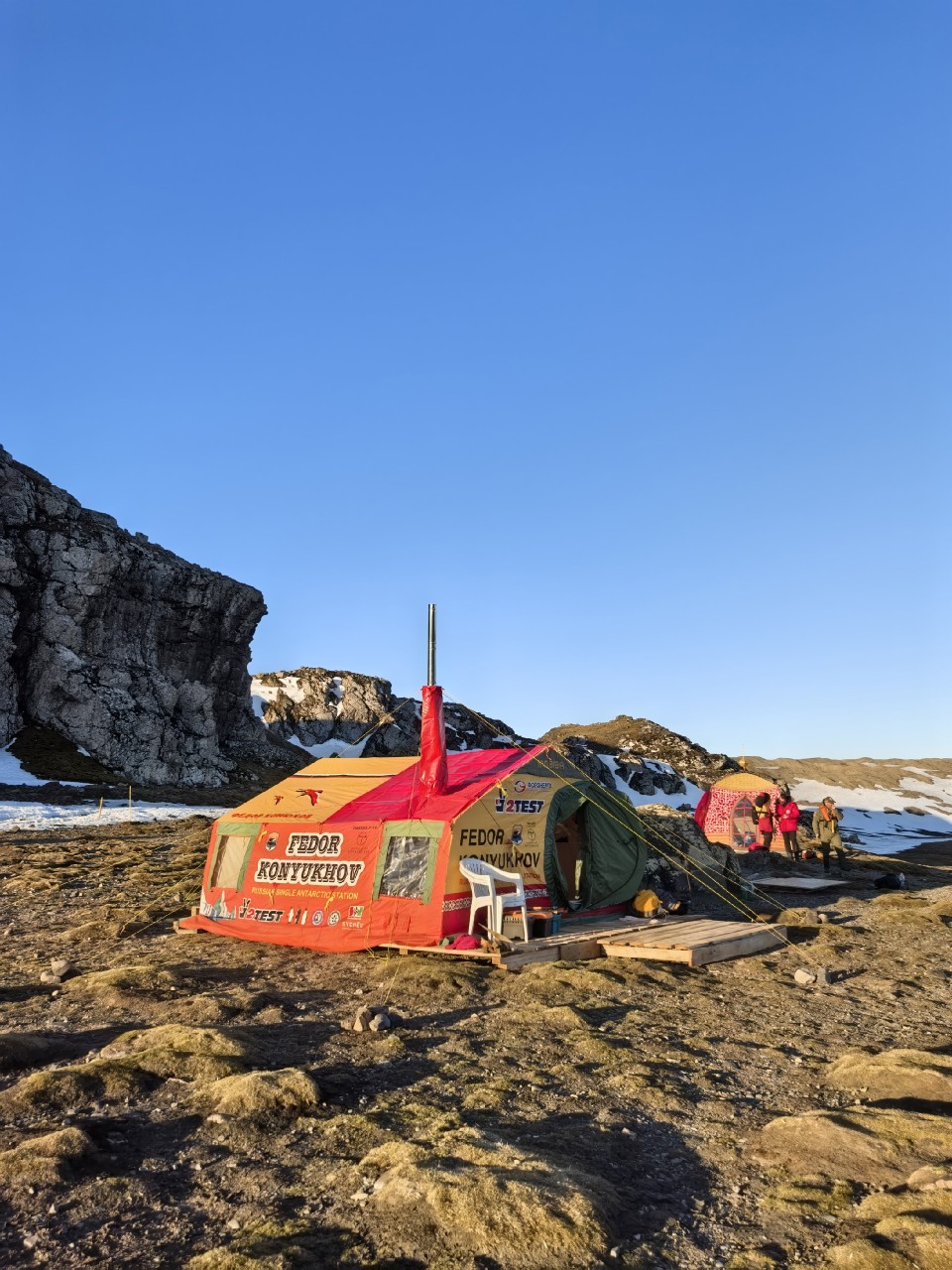 За два дня команда Фёдора Конюхова установила рабочую палатку, отдельно – для сна, склад и разборную часовню с куполом. Лагерь расположили на максимальном удалении от полосы прибоя и на безопасном удалении от лежбища морских слонов. На финальной стадии путешественники настроили спутниковое и радиооборудование. После был установлен столб с указателями расстояния до городов, в которых проживают члены команды. После организации палаточного городка экипажи двух шхун отправились в небольшое путешествие по островам Антарктического полуострова, а Фёдор Конюхов приступил к работе на одиночной станции.