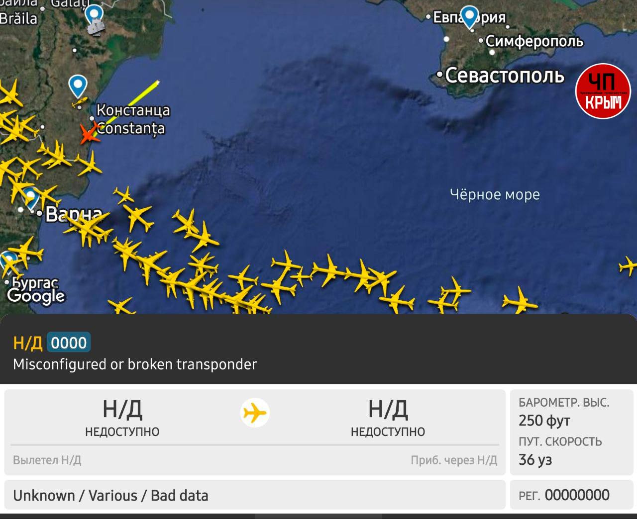 Сразу несколько самолётов разведчиков ведут разведку Крыма над акваторией Чёрного моря
