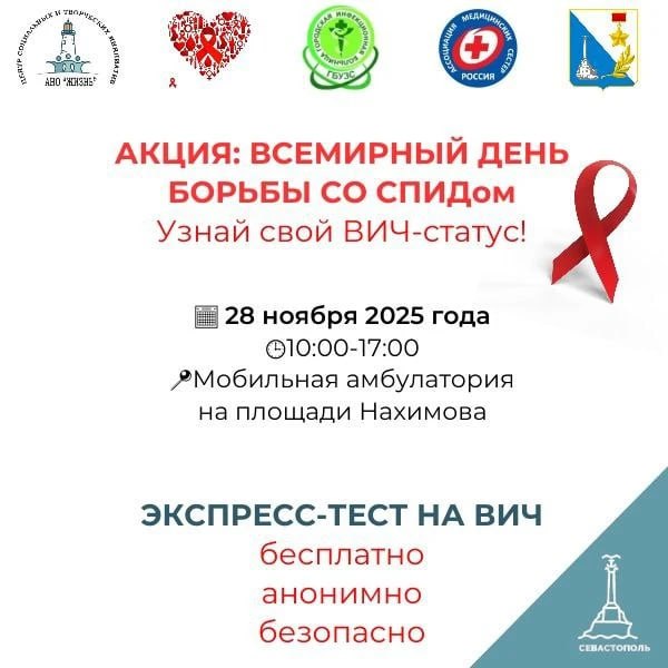 Уважаемые севастопольцы и гости города! В преддверии Всемирного дня борьбы со СПИДом в Севастополе проходит акция «Всемирный день борьбы со СПИДом».