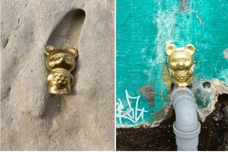 Сделав однажды форму для отливки из старой резиновой игрушки, Никита решил вдохнуть в талисман новую жизнь и принялся расклеивать гипсовых мишек в общественных местах. Сначала радовал ими Орел, потом Москву, потом Севастополь. Но в городе русских моряков его творения восприняли настороженно: сначала предполагали, что это происки врага, а когда увидели их на исторических зданиях и вовсе заявили в полицию.