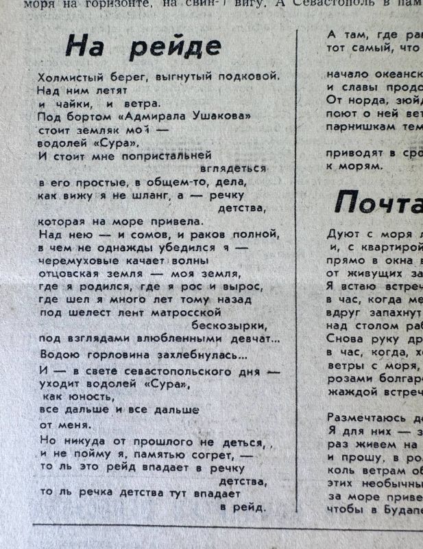 Стихотворение Е. Черткова в газете «Слава Севастополя», 1976 год.