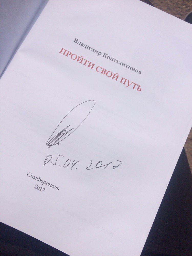 Автограф Владимира Константинова на книге "Пройти свой путь". Фото: Молодая Гвардия/Симферополь/Vk