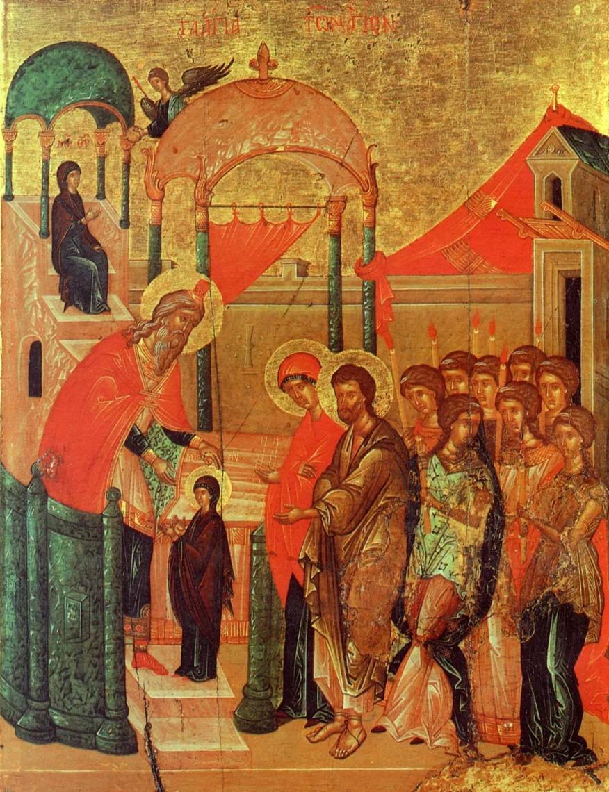 Исполняя данное обещание, родители привели трёхлетнюю Марию в Иерусалимский храм.