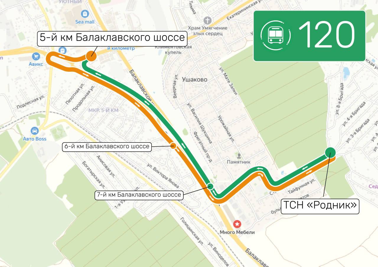 С 8 декабря автобусы №120 «ТСН Родник» – «5-й км Балаклавского шоссе» не будут заезжать на ул. Урожайную