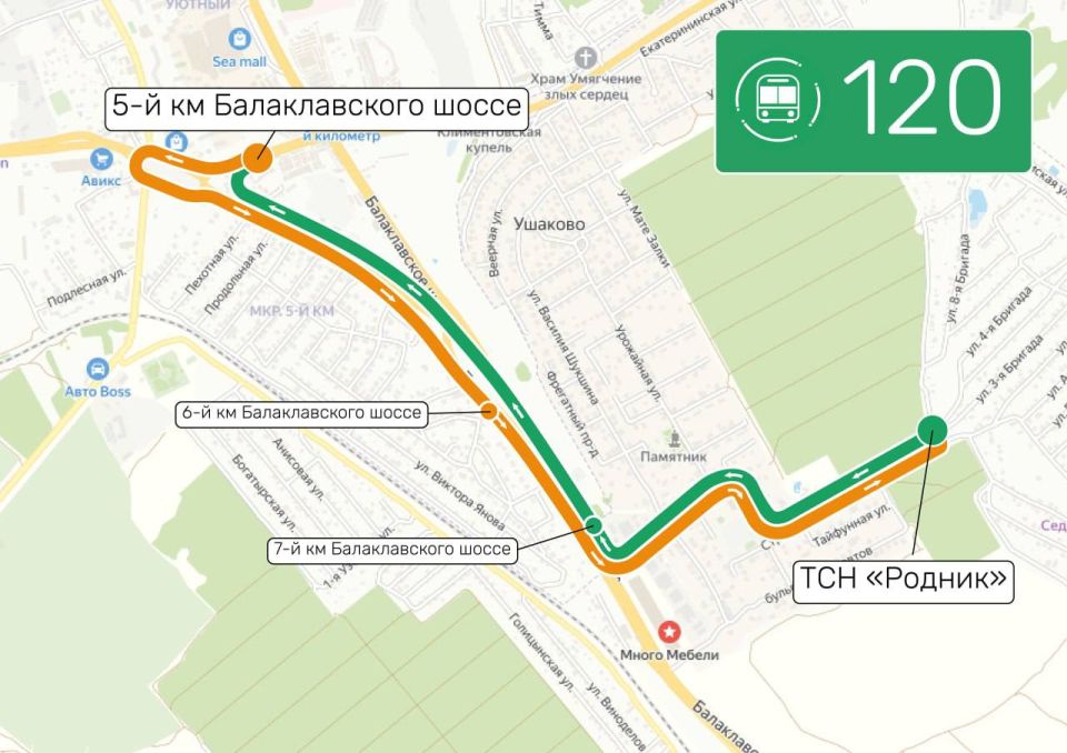 Автобус №120 «ТСН Родник» – «5-й км Балаклавского шоссе» изменил схему движения.