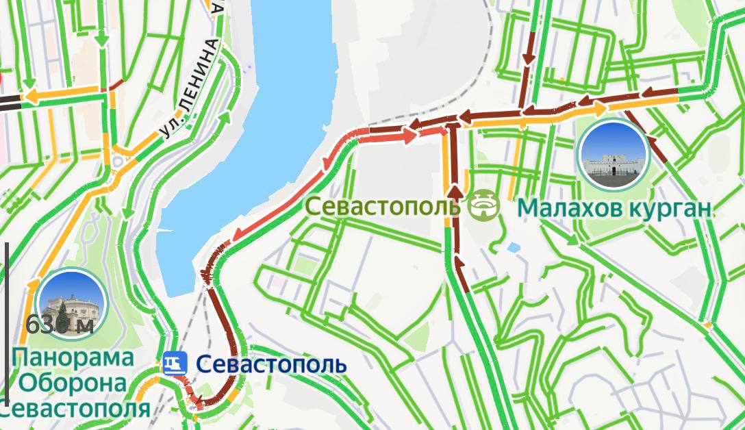 На Корабельной стороне образовалась пробка из-за дорожных работ на Днепровском мосту. Традиционно движение затруднено на 5-м километре Балаклавского шоссе и на кольце генерала Мельника.