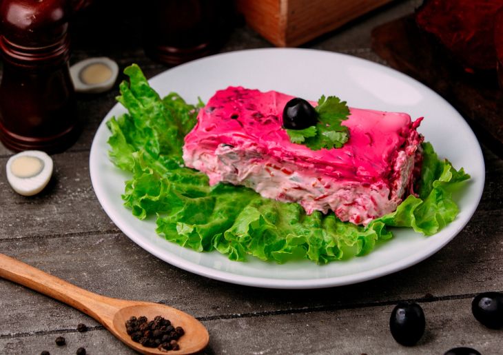 Классический рецепт «Селёдки под шубой» на четырёх человек состоит из следующих ингредиентов: