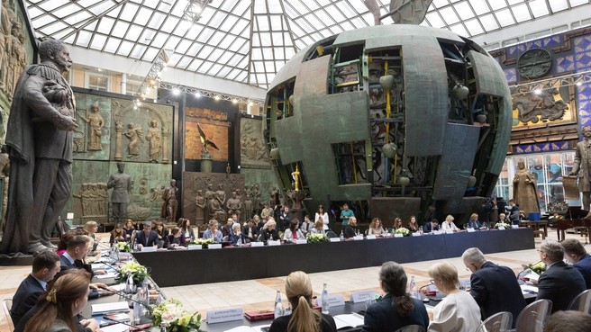 В преддверии заседания Татьяна Голикова посетила выставку «Защитникам Отечества», организованную Российской академией художеств и Студией военных художников имени М.Б.Грекова. В экспозицию вошли произведения живописи, графики и скульптуры из фондов студии, авторских коллекций и частных собраний. Тема выставки – портреты людей разных эпох, участвующих в защите Родины.