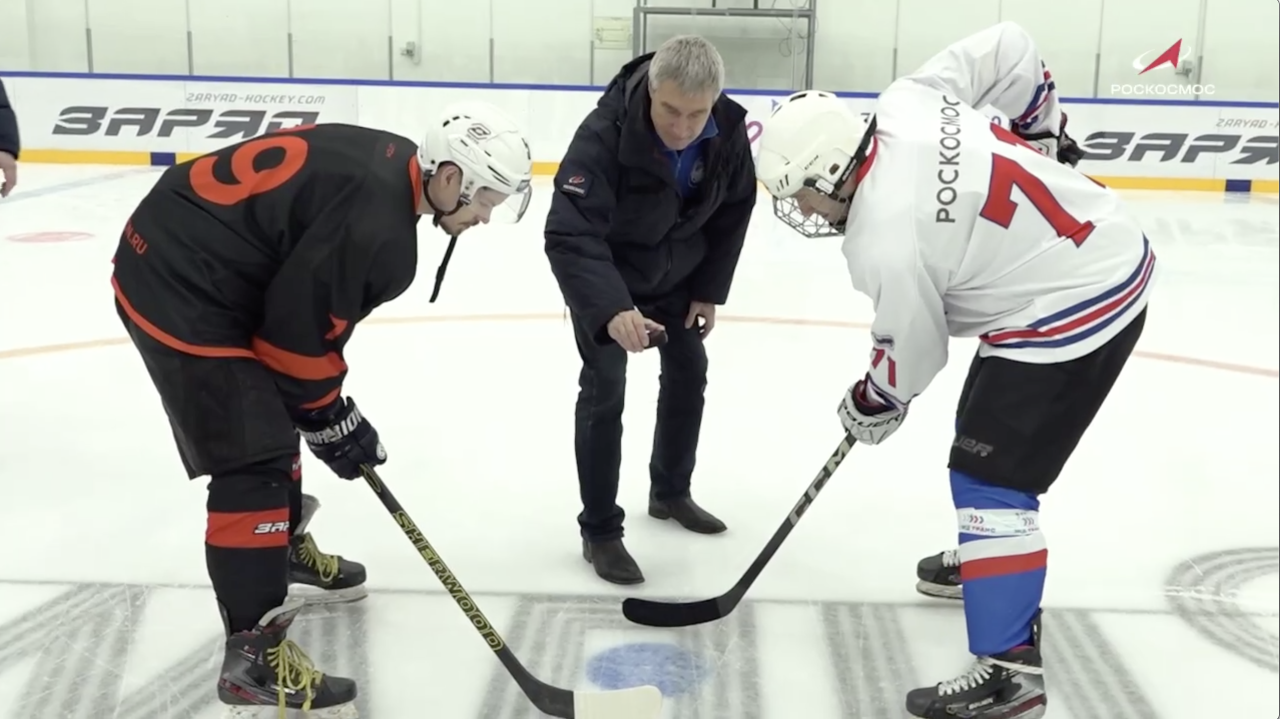 В игре участвовали сборная Роскосмоса, юные хоккеисты и их родители. Перед стартом заместитель генерального директора госкорпорации, Герой Советского Союза и Герой России Сергей Крикалёв провёл символическое вбрасывание шайбы. Сыграли вничью —?4:4, сообщили в Госкорпорации «Роскосмос».