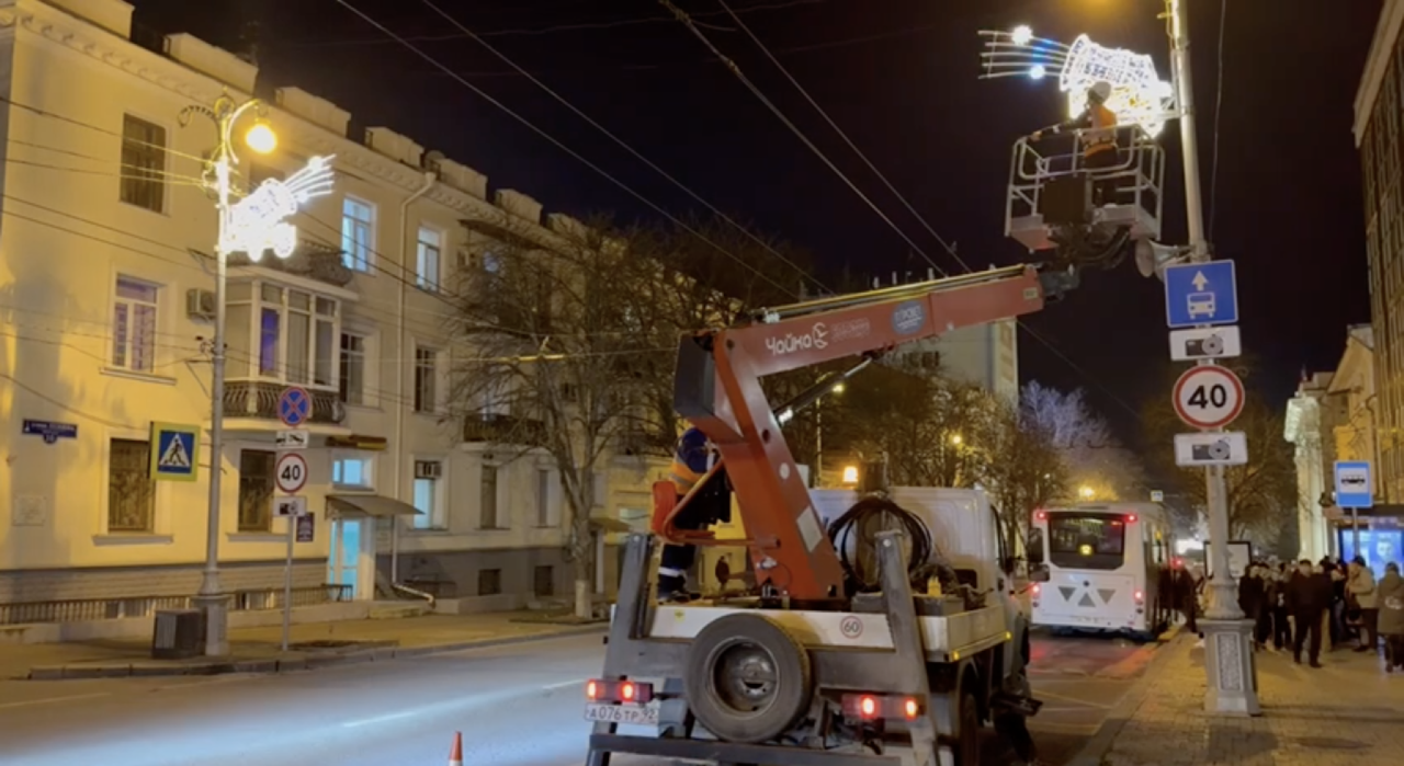 Горсвет подготавливает улицы Севастополя к Новому году.