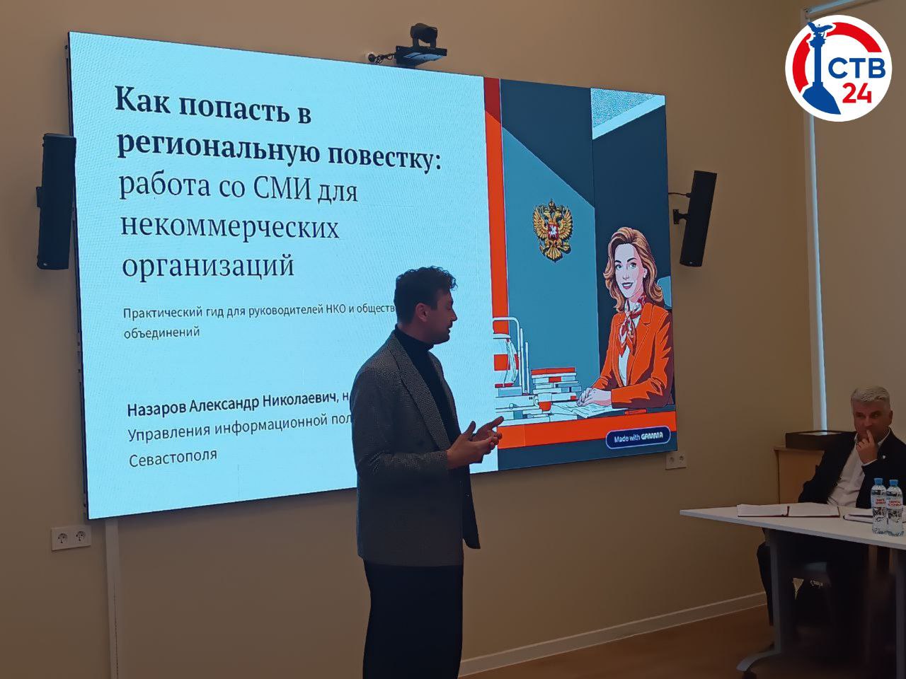 Также в рамках встречи Александр Назаров, начальник Управления информационной политики Севастополя, провёл для организаций презентацию о том, как эффективно работать со СМИ.