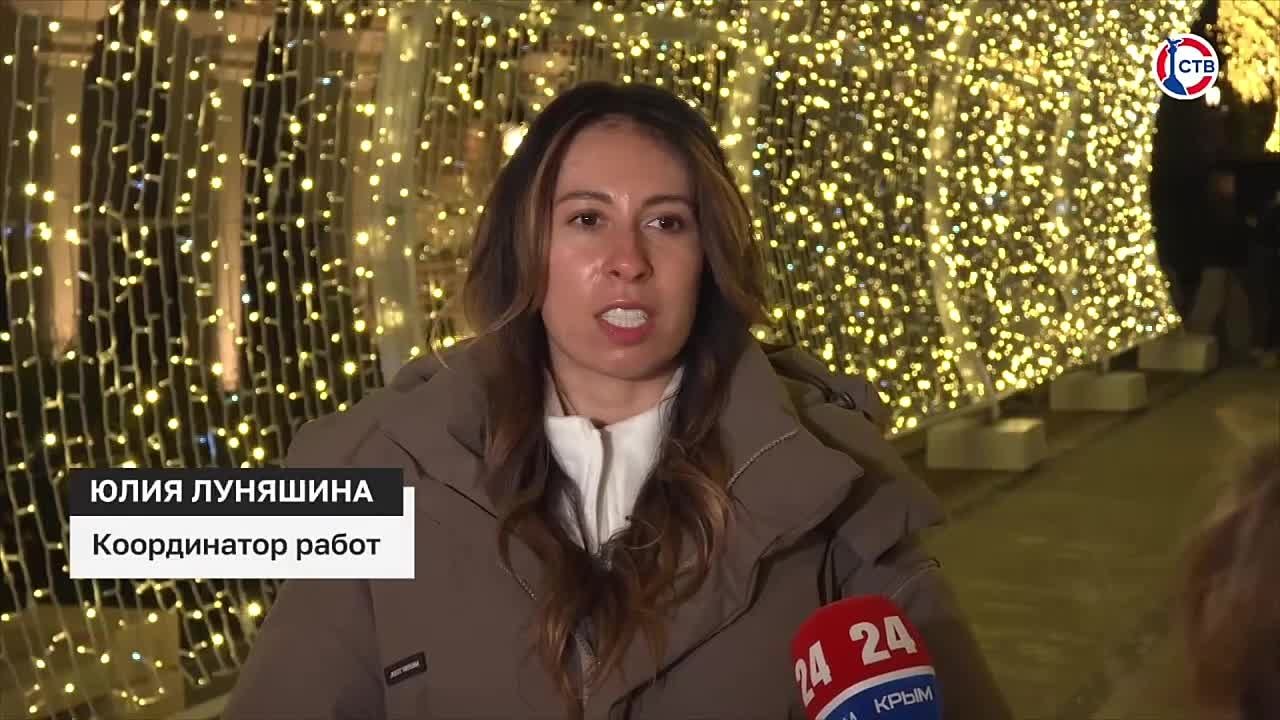 Специалисты уже смонтировали гирлянды, светодиодные деревья и тоннели. Общая длина гирлянд составила 100 километров.