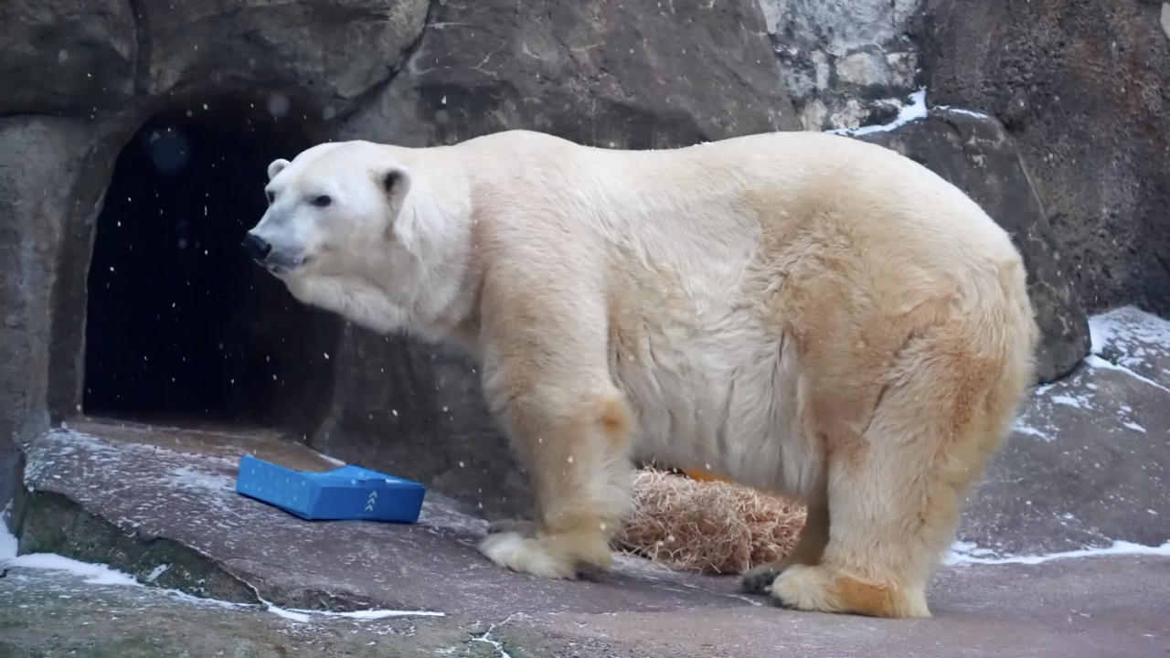 Хотя точная дата его рождения неизвестна, специалисты считают, что появился на свет он именно в декабре. В праздничный день Терпею устроили сюрприз – подарили новую игрушку, коробку с мясом, а также спрятали в древесной шерсти кроличьи шейки. Белый медведь поселился в Московском зоопарке год назад. Его спасли в Якутии маленьким сиротой. Со временем Терпей освоился на новом месте, научился давать осматривать лапы и пасть. А больше всего он любит разрывать коробки с угощениями и ловить рыбу в воде, отметили в пресс-службе Московского зоопарка.