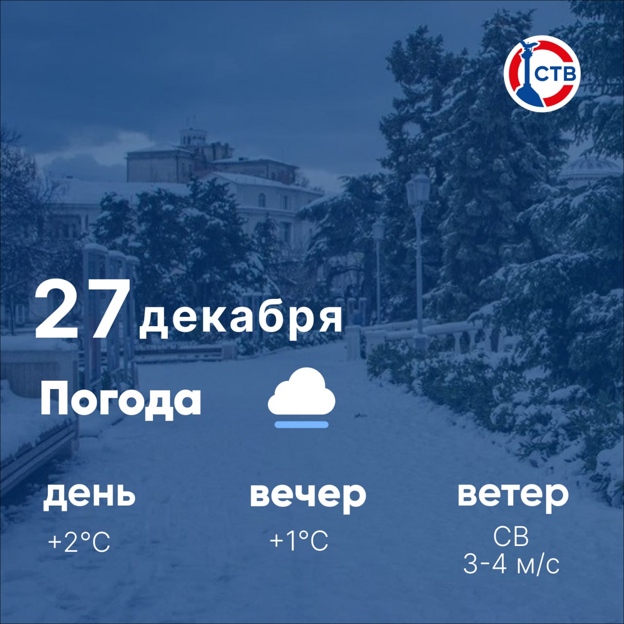 27 декабря на Крымском полуострове в силе штормовое предупреждение.В Симферополе облачно с прояснениями. Снег. Ветер северо-западный 20-23 м/с. Температура воздуха днем около 0°.В Севастополе облачно с прояснениями. Снег. Ветер северный 10-15 м/с....