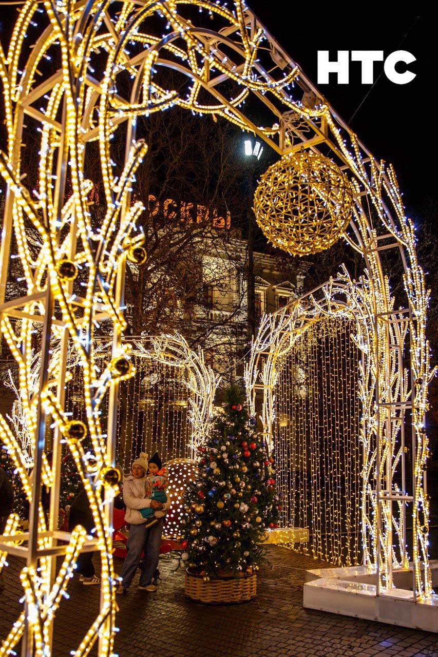 Несмотря на капризы погоды, город сияет огнями и создаёт праздничное настроение.
