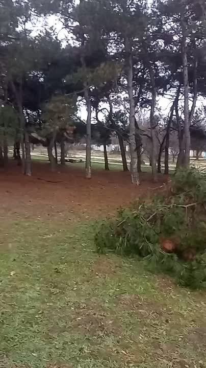 В сквере 200-летия Севастополя, что между ул. Генерала Мельника и пр. Победы, множество повреждённых сосен: оборванные неустановленной силой большие и малые ветви разбросаны по всему скверу.