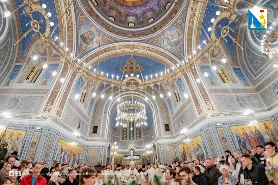 В Рождественскую ночь сотни верующих собрались в Свято-Владимирском соборе Херсонесского монастыря на всенощное бдение и Божественную литургию