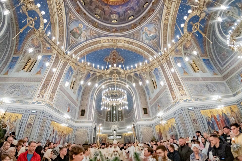 Богослужение в соборе возглавил митрополит Симферопольский и Крымский Тихон. В своём поздравлении он назвал жителей Города-Героя «мужественными людьми» и напомнил слова из пророчества о появлении Спасителя.