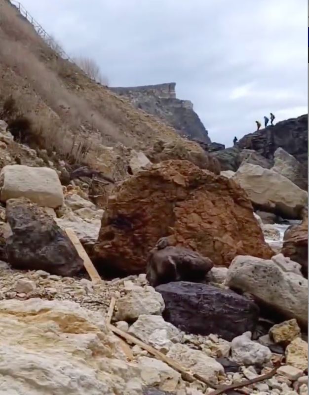 Оползень разрушил «Царский» пляж на Фиоленте. Селевый поток повредил мыс с правой стороны, доступ к морю стал опасным.