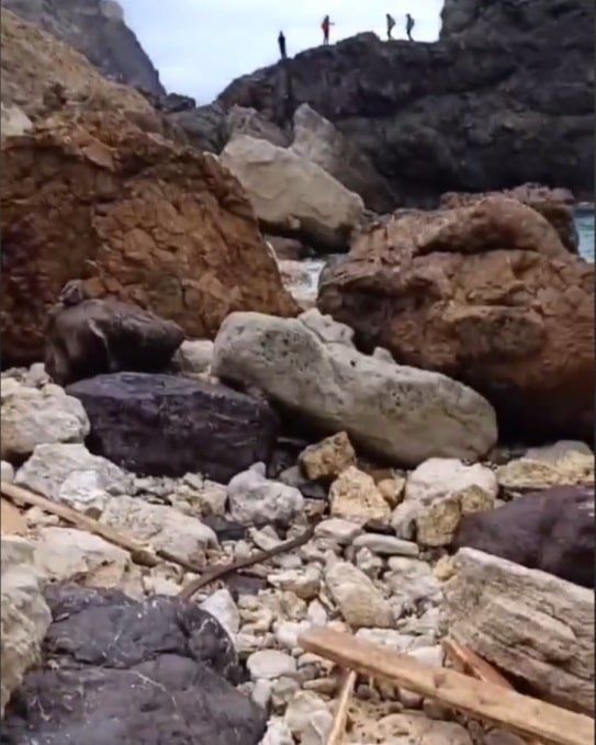 Как сообщил ForPost житель Фиолента Сергей, на пляже действительно разрушен деревянный навес и появилось несколько крупных валунов. Скорее всего, их вынесло морем во время шторма на прошлой неделе, полагает собеседник.