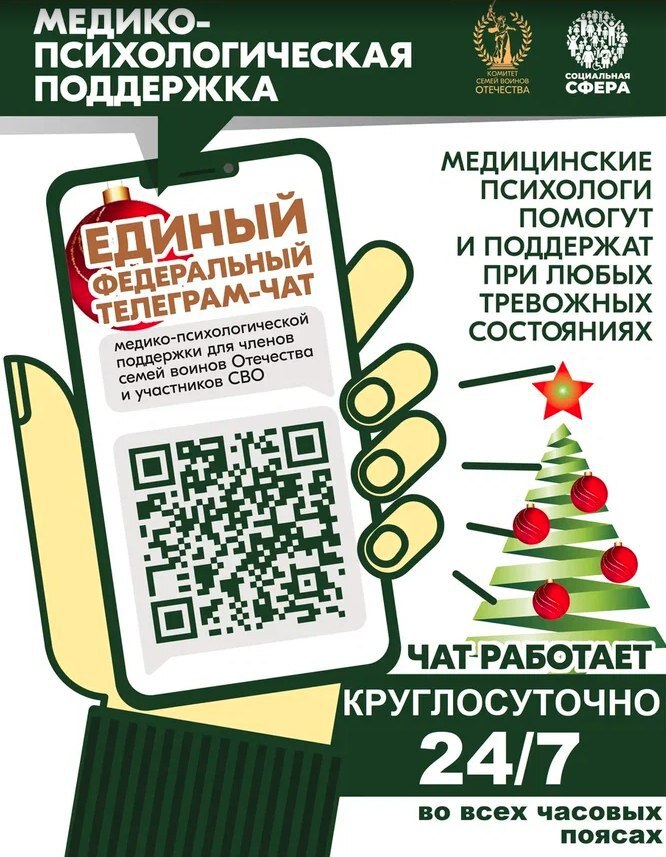Продолжает свою работу единый федеральный чат Комитета семей воинов Отечества по оказанию медико-психологической поддержки семьям и участникам специальной военной операции в круглосуточном режиме.