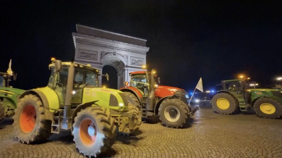 На улицы выехали 350 тракторов – большая часть сельхозтехники перекрыла набережную Орсе и дорогу перед Национальным собранием. Колонна растянулась более чем на километр, пишет ТАСС. Полиция перекрыла часть центральных улиц, по которым мимо Триумфальной арки проехали тракторы.