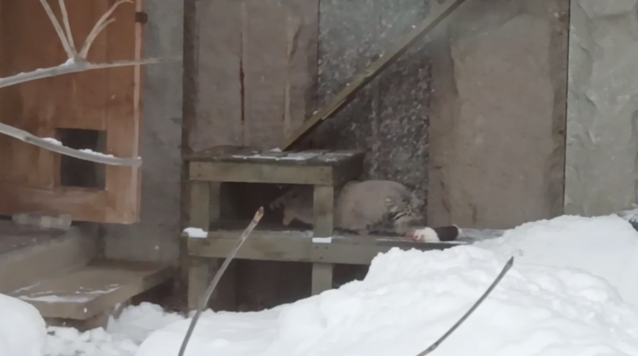 В снежный день символ Московского зоопарка манул Тимофей не побоялся непогоды и выбрался из своего домика.