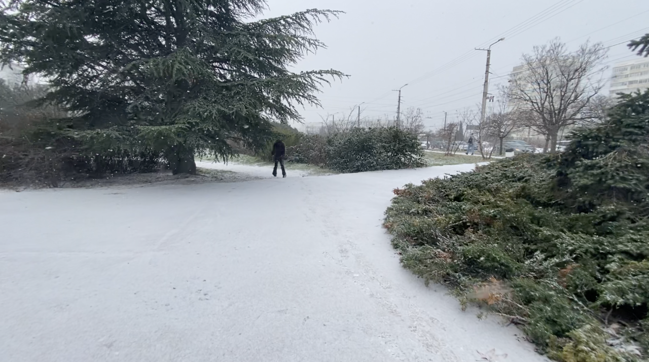 Севастополь накрыл снегопад. Припорошило тротуары и автомобильные дороги.