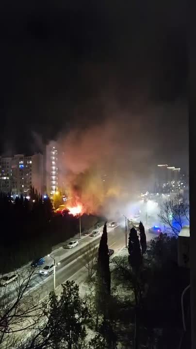 В Севастополе на улице Фадеева тушат заброшенное кафе.