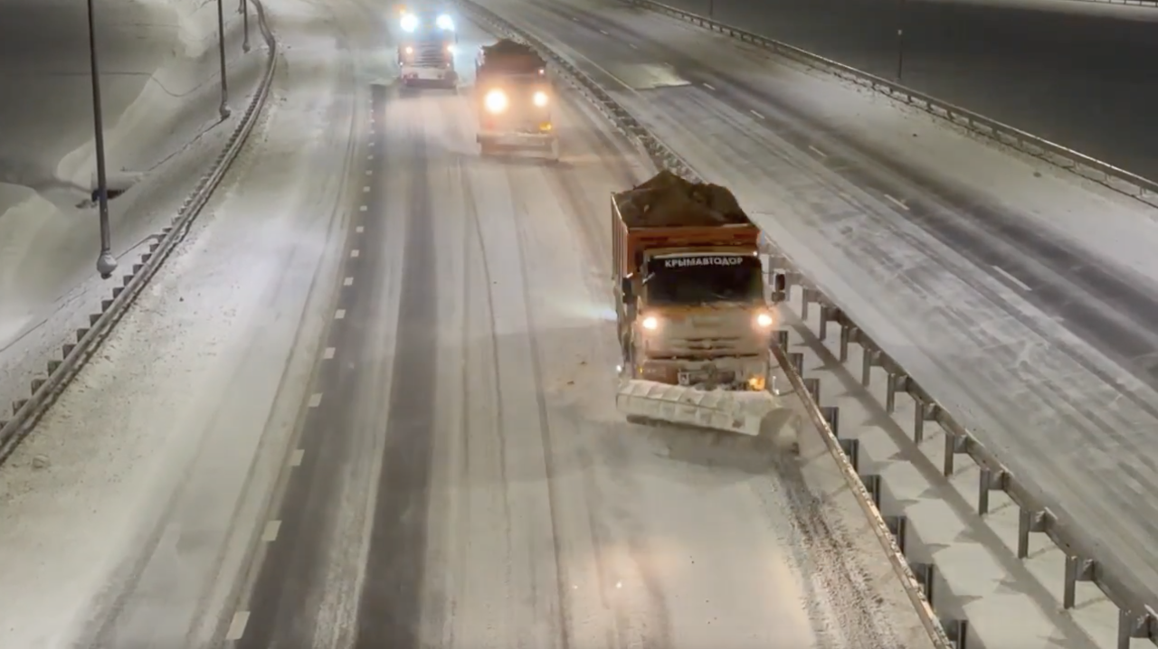 Трассы Крыма из-за штормового ветра утопают в снегу