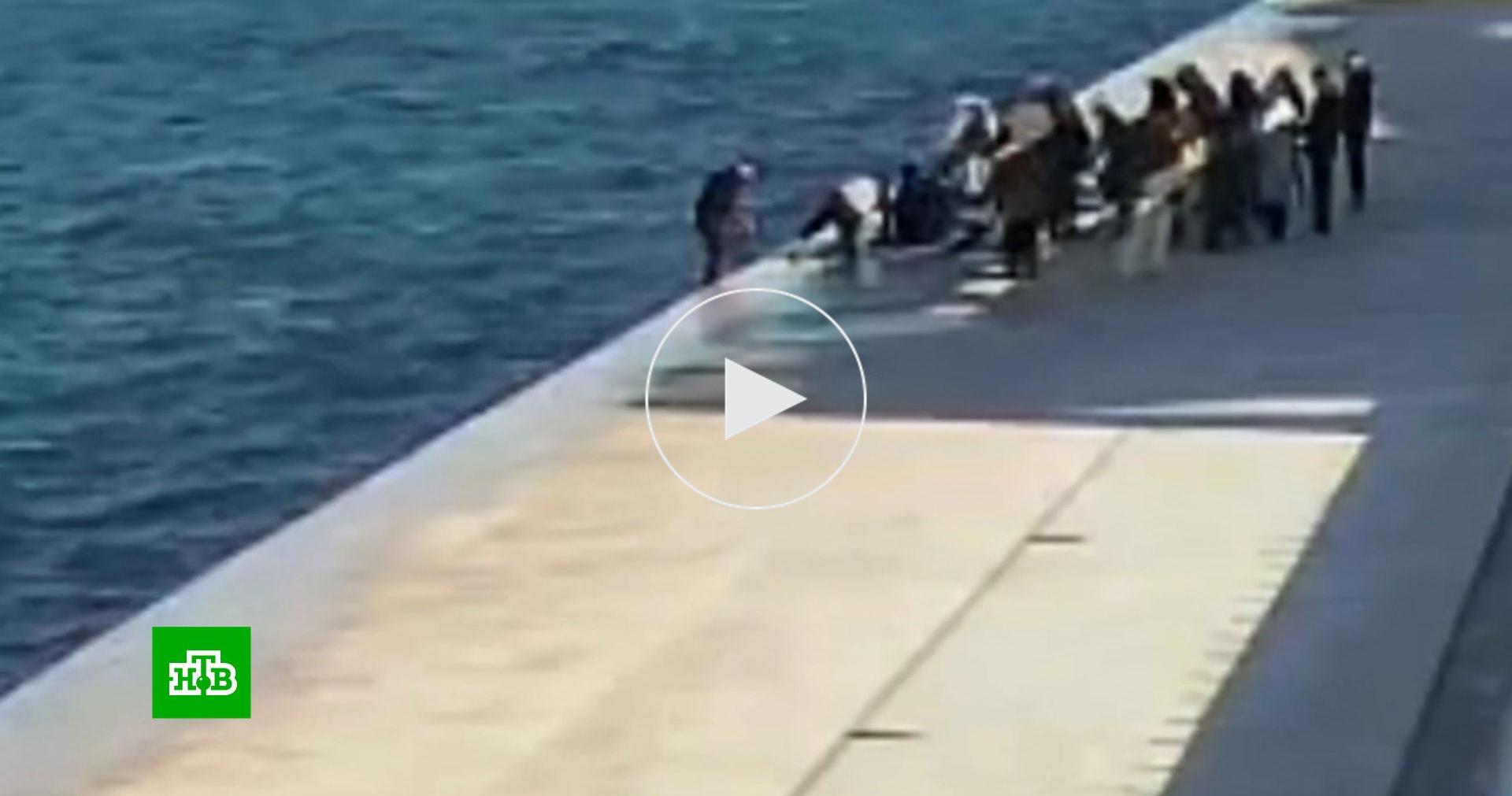 Запись с камеры наблюдения одного из севастопольских отелей держит в напряжении до последних секунд. На них мальчик, гулявший с подругой по набережной, решил показать трюк, но не удержался и упал в ледяное море.