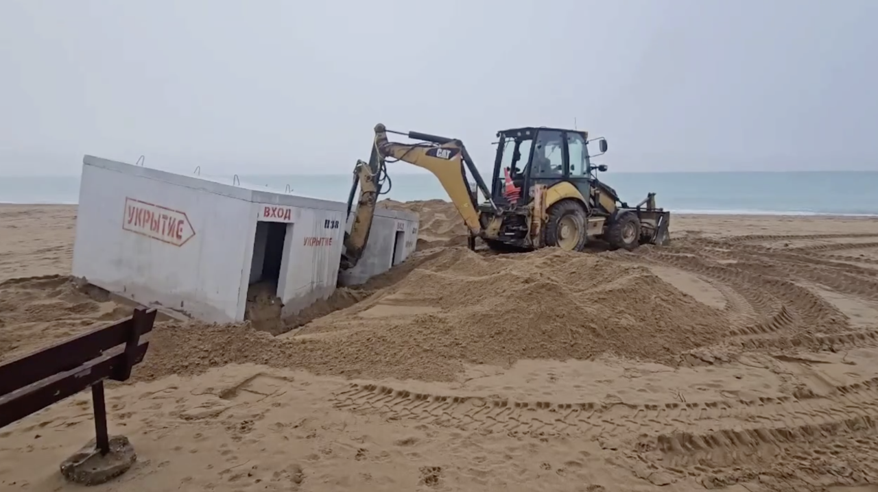 Рабочие предварительно экскаваторами и вручную расчистили песок возле и внутри укрытий, а затем уже при помощи крана достали конструкции. Восемь укрытий на пляже отодвинули подальше от кромки воды, чтобы во время шторма их не доставали волны. Михаил Развожаев поручил ответственным проверить состояние всех 570 укрытий в Севастополе и, при необходимости, привести их в порядок.