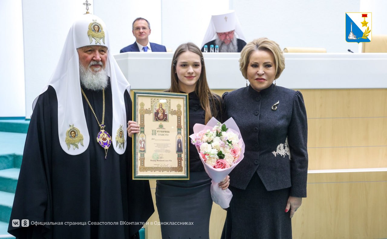 Награду Анастасии Рощупкиной вручили патриарх Кирилл и председатель Совета Федерации Валентина Матвиенко.