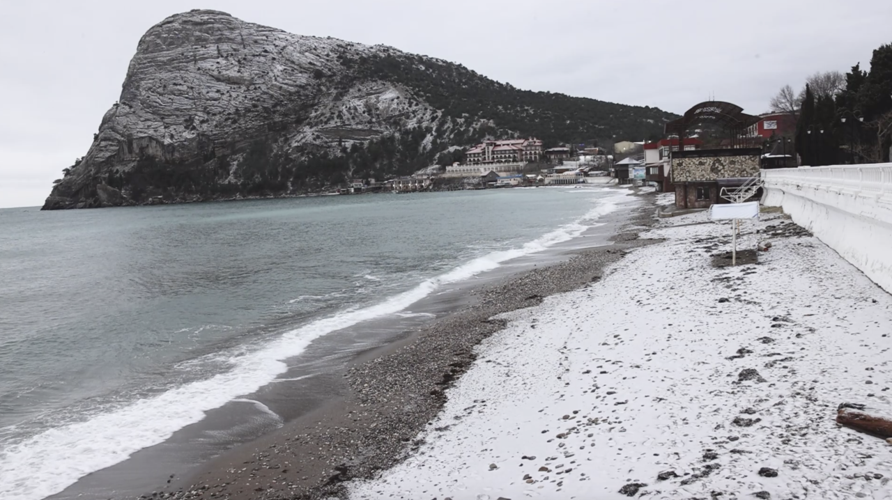 Крымский посёлок Новый Свет, знаменитый своими солнечными пляжами и тёплым климатом, заметало снегом. Белым покрывалом укуталисьнабережная и галечный пляж. Морской пейзаж с заснеженными берегами создал...