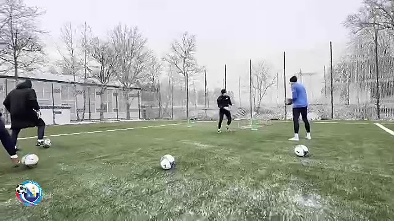 В Крымске установилась морозная и снежная погода. Однако это не мешает тренировкам наших футболистов.