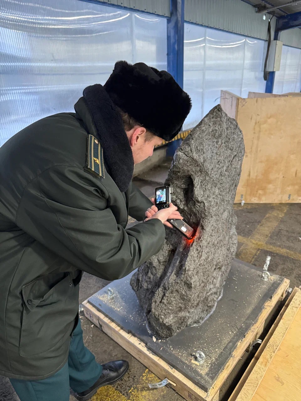 Фрагмент метеорита ввезли в Россию из одной из стран ЕАЭС. При попытке вывоза его задекларировали как скульптуру для ландшафтного дизайна. Однако при детальной проверке специалисты выяснили, что происхождение и стоимость груза отличаются от сведений, заявленных в декларации. Экспертиза установила, что это крупный фрагмент железного метеорита Алетай, его стоимость – около 323 млн рублей. Возбуждено уголовно дело, нарушителям грозит лишение свободы от года до трёх лет.