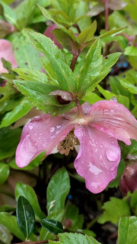 Несмотря на затянувшийся холодный дождь, здесь распустился морозник — удивительный цветок, который называют «зимовником» за способность цвести посреди зимы. Нежные розовые бутоны, которые пробиваются сквозь холод и стужу, стали для гостей сада предвестником скорой весны.
