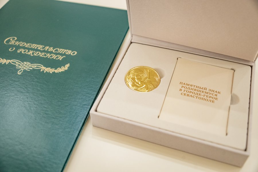 Медаль «Родившемуся в Городе-Герое Севастополе» — это памятный знак, который получают дети, рожденные на территории Севастополя. Медаль вручается при оформлении свидетельства о рождении и сопровождается удостоверением.