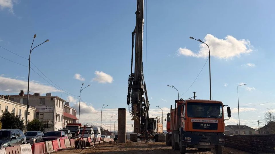 На въезде в город начался монтаж буронабивных свай подпорных стен. А на месте центральной клумбы уже вырыт котлован под устройство нижнего яруса развязки.