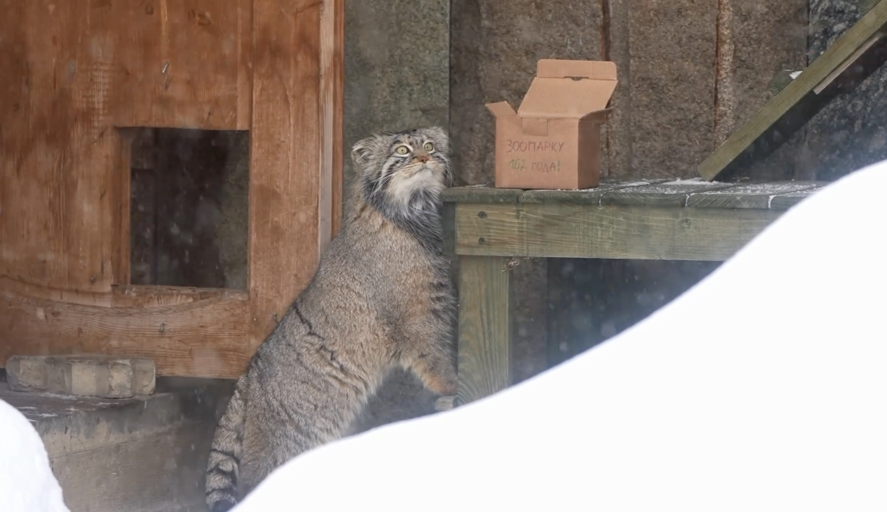 Манул Тимофей из Московского зоопарка получил вкусное угощение.