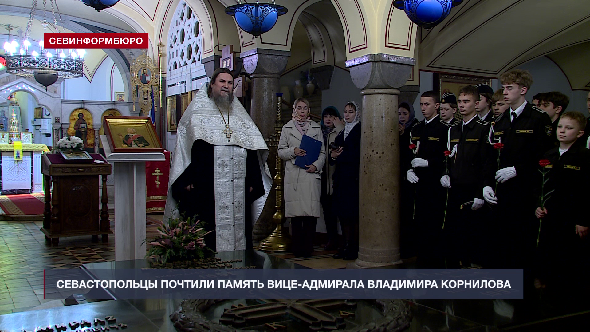 Севастопольцы почтили память вице-адмирала Владимира Алексеевича Корнилова. Во Владимирском соборе-усыпальнице адмиралов прошёл молебен, в котором приняли участие духовенство, военные и кадеты нашего города.