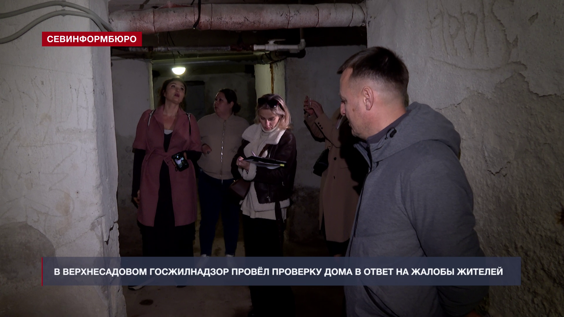 СВЕТЛАНА КОЗАК, начальник надзорного управления Госжилнадзора Севастополя: «И мы зафиксировали в подвале неудовлетворительное состояние как инженерных сетей, так и ограждающих конструкций, отделки. Выявили наличие высокого уровня грунтовых вод, которые стоят в подвальном помещении, и которые, в свою очередь, ведут к постоянному отсыреванию как подвала, так и верхнерасположенных этажей»