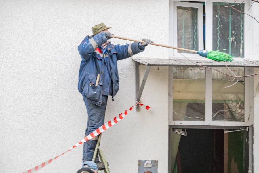 «Сейчас происходит уборка стекол, которые посыпались, уборка подъездов. Обследованы все близлежащие дома. Организовали полностью всю работу. Ведется затяжка окон пленкой, чтобы исключить продувание. На месте задействовано порядка 30 сотрудников управляющей компании, а также привлеченные подрядные организации», — уточнил генеральный директор УК «Центр» Андрей Колтышев.