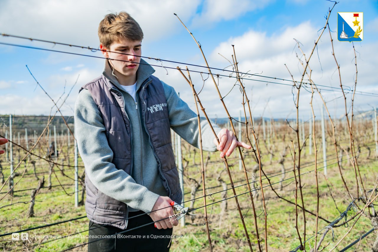 На 73 гектарах на винодельне Рема Акчурина специалисты начали ручную обрезку ещё в конце января, на все работы уходит около месяца. Теперь здесь готовятся подвязывать лозу к шпалере, чтобы защитить молодые побеги.